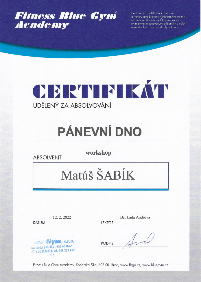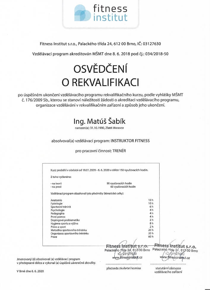 | 1/2020 | Kurz instruktor fitness, Brno (150 hodin) |