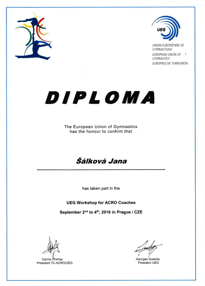 | 2.-4.9.2016 | UEG kurz akrobatické gymnastiky pro trenéry, Praha |