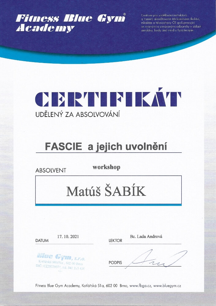 | 10/2021 | Workshop: Fascie a jejich uvolnění, Brno |